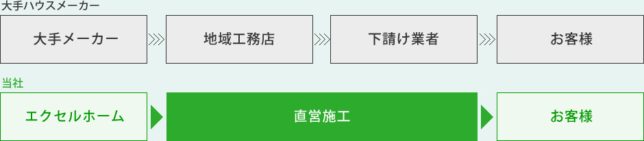 直営施工(当社大工)により、優れた品質の安定をはかっております。伝統の技を維持しつつも、新しく良い技術を取り入れています。安定した年間受注により、建築資材購入コストを抑え、また営業マンの人件費や、住宅展示場を持たないなどといった、販促活動を最小限にとどめ、その分の費用をお客様に還元しております。